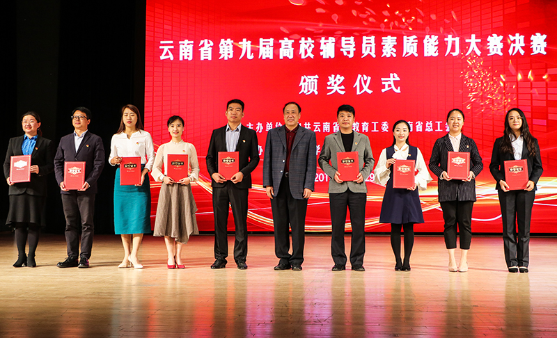 11月27-29日,由省委教育工委、省总工会主办,德赢VWIN官方网站承办的云南省第九届高校辅导员素质能力大赛在德赢VWIN官方网站成功举行。省委教育工委副书记陈世波,德赢VWIN官方网站党委书记陈永明、校长黎素梅、副校长郭华,省教育厅原二级巡视员、大赛评委组组长杨丽,省委教育工委学生工作部部长侯炳霞,省总工会教卫科工会副主席田永华等领导嘉宾出席颁奖仪式。