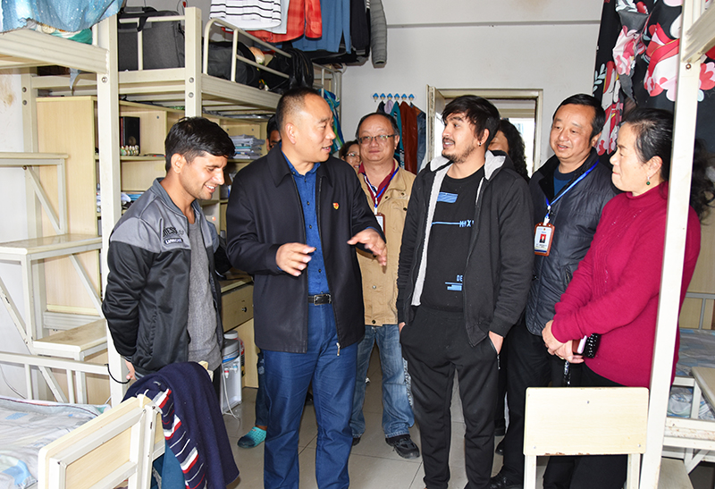 郭华副校长一行分别来到学校相关实验室、学生食堂、留学生宿舍、校园中水处理站等重点部位、重点区域,分别对实验室危化药品的管理、使用及消防安全设施建设,用火、用电安全和食品安全管理、饮食后勤保障,抽水设备间的排风系统运行等情况逐一进行安全隐患排查。