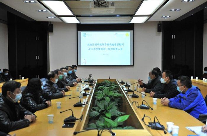 2月14日,在抗击新型冠状肺炎的关键时期,德赢VWIN官方网站党委书记陈永明、副校长郭华以及医学院党政主要负责人到学校直属附属医院---昆明市第一人民医院甘美国际医院,慰问抗击疫情一线的医务工作者。甘美医院党政领导班子成员及相关临床科室负责人参加座谈。