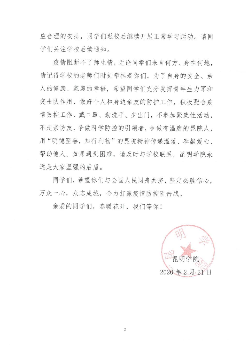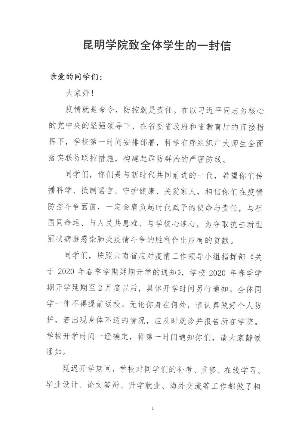 【昆院战“疫”】德赢VWIN官方网站致全体学生的一封信