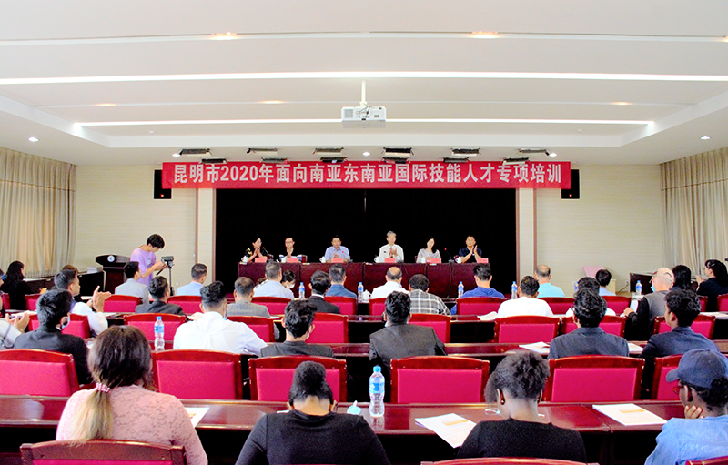 7月7日,昆明市人力资源和社会保障局主办的“昆明市2020年面向南亚东南亚国际技能人才专项培训”在德赢VWIN官方网站开班。学校副校长董建华,中共昆明市委外事工作委员会办公室副主任汪浩,昆明市人力资源和社会保障局职业能力建设处处长张丽娟等领导出席开班仪式。