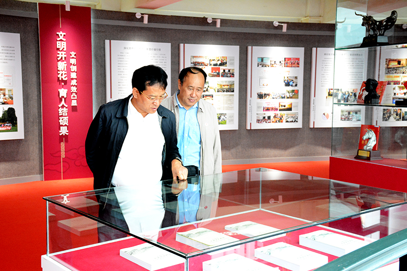 考评组参观“立德铸魂 以文化人——德赢VWIN官方网站创建第二届全国文明校园成果主题展”