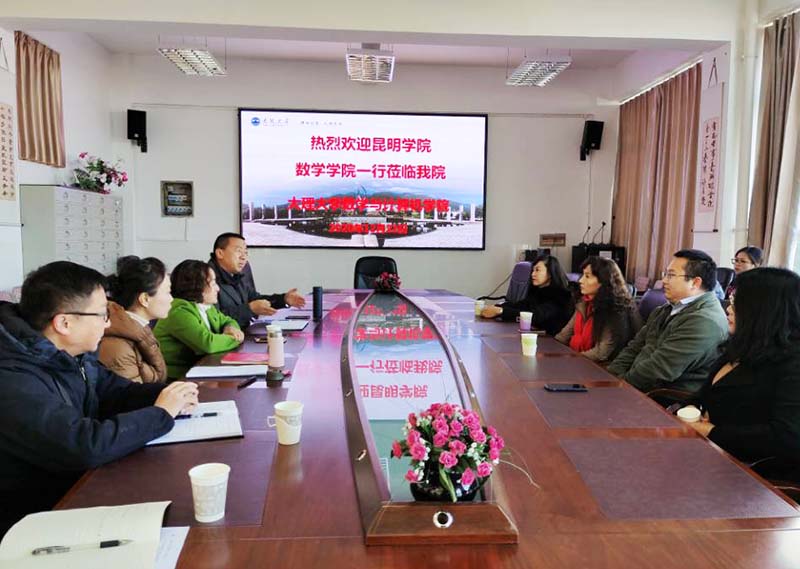 12月22日,数学学院党委书记秦丽娟、院长周兴伟带领16名师生党员到大理大学数学与计算机学院学习交流。