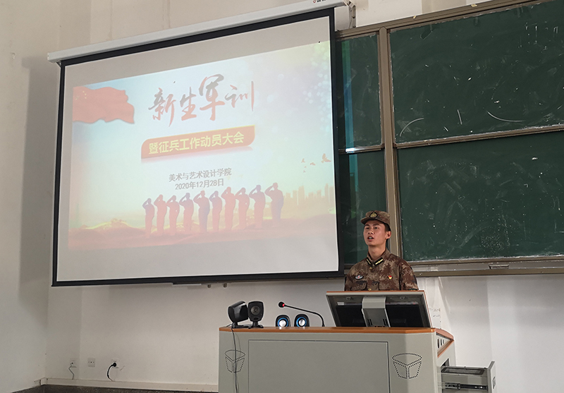 为贯彻落实学校新生军训课程的相关要求,保证学院2020级学生军训工作安全有序的开展,12月28日,美术与艺术设计学院在学院报告厅组织开展“2020级新生军训暨征兵工作动员大会”。会议由学院党委副书记张晓鸥主持,院党委书记祝立业出席并做动员讲话,2020级年级辅导员及全体本科新生到场参会。