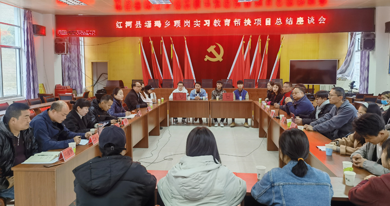 2020年12月31日,德赢VWIN官方网站红河县垤玛乡顶岗实习教育帮扶项目总结座谈会在红河县垤玛乡人民政府会议室召开。会议对2020年9月22日—12月30日期间德赢VWIN官方网站赴红河县垤玛乡开展顶岗实习教育帮扶项目的20名师范实习生实习情况作总结。