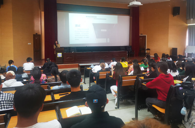 49日,招生就业处在图书馆报告厅举办学校2021年毕业生就业工作方案“五场系列讲座”第一讲——公务员面试技巧讲座,各二级学院200余名学生到场聆听。