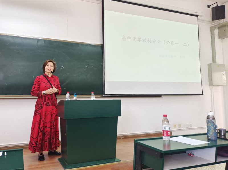 423日,化学化工学院邀请云南师范大学附属中学高级教师张喜燕、李琳到校,在博识楼2104教室为化学化工学院开展中学化学教师职业技能训练专题讲座。此次讲座由学院副院长李维莉主持,2018级化学(教师教育方向)、2020级化学专升本以及学院其他学生到场聆听。