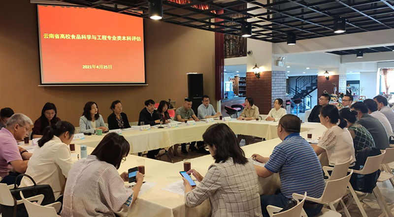 4月25日,云南省2021年高校本科专业综合评价食品科学与工程类专业点评价会议在学校旅游学院酒水实验室召开。食品科学与工程类专业类组长、昆明理工大学农业与食品学院常务副院长(正处级)曹建新教授,副组长、云南农业大学食品科学技术学院党委书记龚加顺教授,德赢VWIN官方网站旅游学院院长田芙蓉教授、烹饪与营养教研室王京法主任及全省近30名食品科学与工程类专业负责人参加会议。