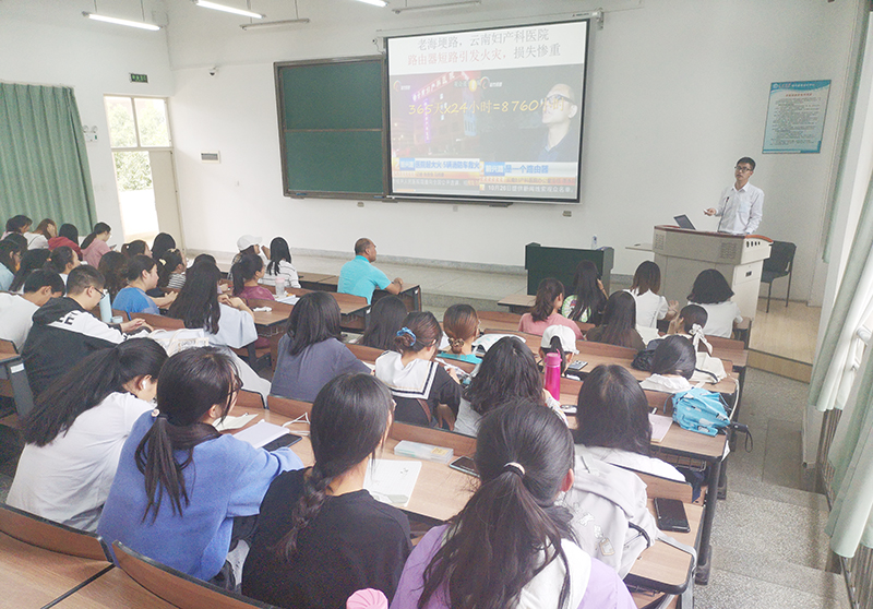 为进一步提高全体师生、后勤临时人员、商铺经营者的消防安全意识,增强应对初期火灾的自救逃生能力,全面强化学校消防安全管理水平。5月7日-6月6日,保卫处在博雅楼2101、3202教室开展了消防安全知识讲座及灭火演练,全校18个院系、后勤临时人员、商铺经营者共2900人参加。
