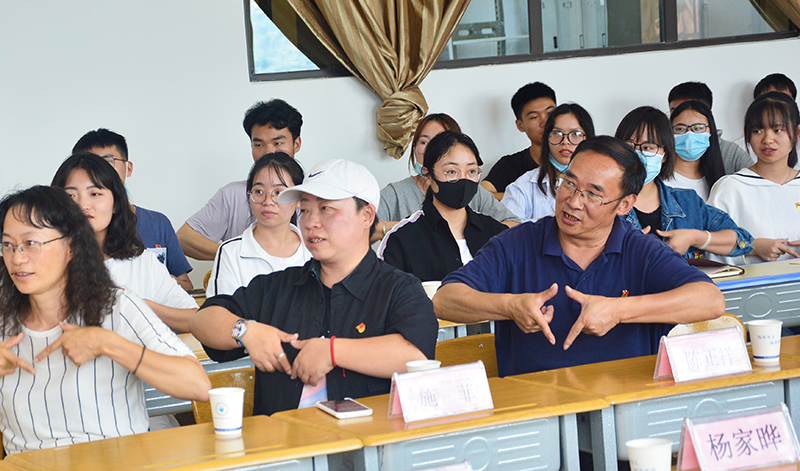 座谈会后,双方观看并学习特殊教育专业学生手语唱红歌,数学学院学生党员与2019级培智班互动开展党史知识竞答活动。