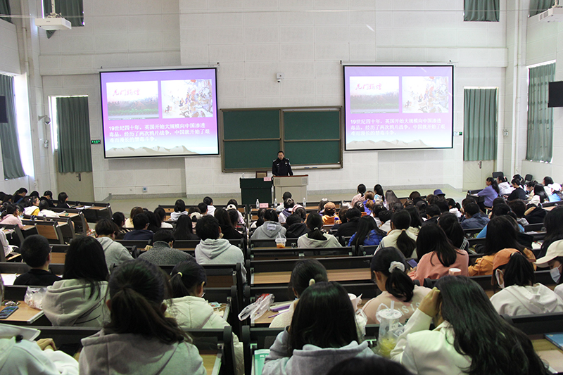 12月13日,为深入学习贯彻习近平总书记关于禁毒工作重要指示精神,进一步增强在校大学生识毒防毒拒毒意识和能力。经济管理学院诚邀昆明市公安局禁毒支队法制部教导员何涛,警员胡靖奇、杨文在博雅楼2101教室为经管学院300余名学生开展“远离毒品,让青春更灿烂”专题讲座。