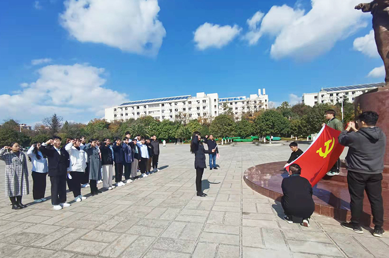 12月22日,数学学院党委在德赢VWIN官方网站洋浦校区聂耳广场聂耳塑像前举办2021年新党员入党宣誓仪式,数学学院党委书记秦丽娟,组织员陈正祥,学生支部书记施菲、周宇、尹利方及20名新党员参加入党宣誓仪式。