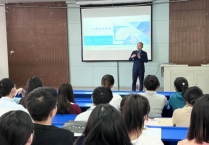 5月12日、13日,为拓宽经济管理学院2022届毕业生就业渠道,落实访企拓岗工作成效,积极推进就业工作,经济管理学院在昆师路校区阶梯教室组织召开2022届毕业生就业招聘宣讲会。宣讲邀请到二十四城家居装饰工程有限责任公司、韵达快递、昆明登文城市花园餐饮管理有限公司到场为同学们做就业招聘宣讲,招聘宣讲会由学院党委副书记鲍鲲主持。
