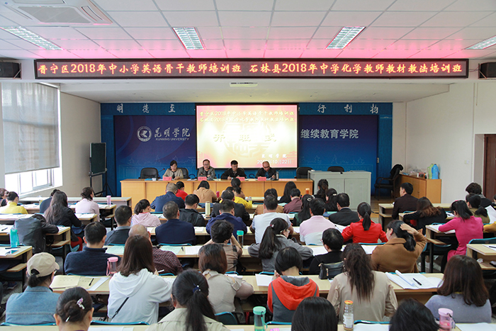 10月22日,受晋宁区教育局和石林县教育局的委托,晋宁区2018年中小学英语骨干教师培训班及石林县2018年中学化学教师教材教法培训班共78名教师在德赢VWIN官方网站昆师路校区继续教育学院开班。继续教育学院管彦平院长、晋宁区教师进修学校雷蕊副校长、石林县教师进修学校赵荣红副校长出席开班仪式。
