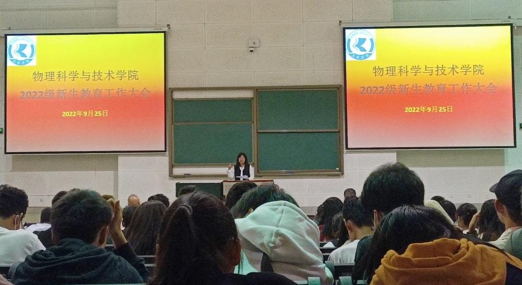 9月25日,物理科学与技术学院集中开展2022级新生入学教育。学院全体党政领导、新生班主任、辅导员及学院部分教师代表参加。