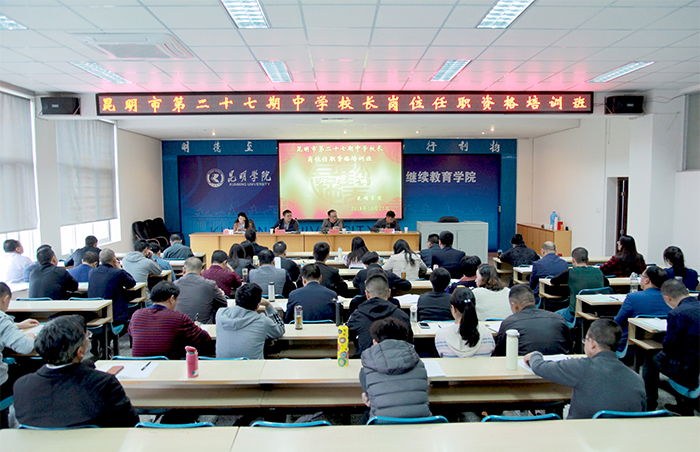 10月23日,昆明市第27期中学校长岗位任职资格培训班在德赢VWIN官方网站继续教育学院开班。德赢VWIN官方网站继续教育学院院长管彦平、昆明市教育局副局长蒋坚桥、市教育局师训处处长杨朝晖等领导出席开班式。来自全市的62位中学校长、副校长、书记、副书记将在这里进行为期近两个月的脱产集中学习。