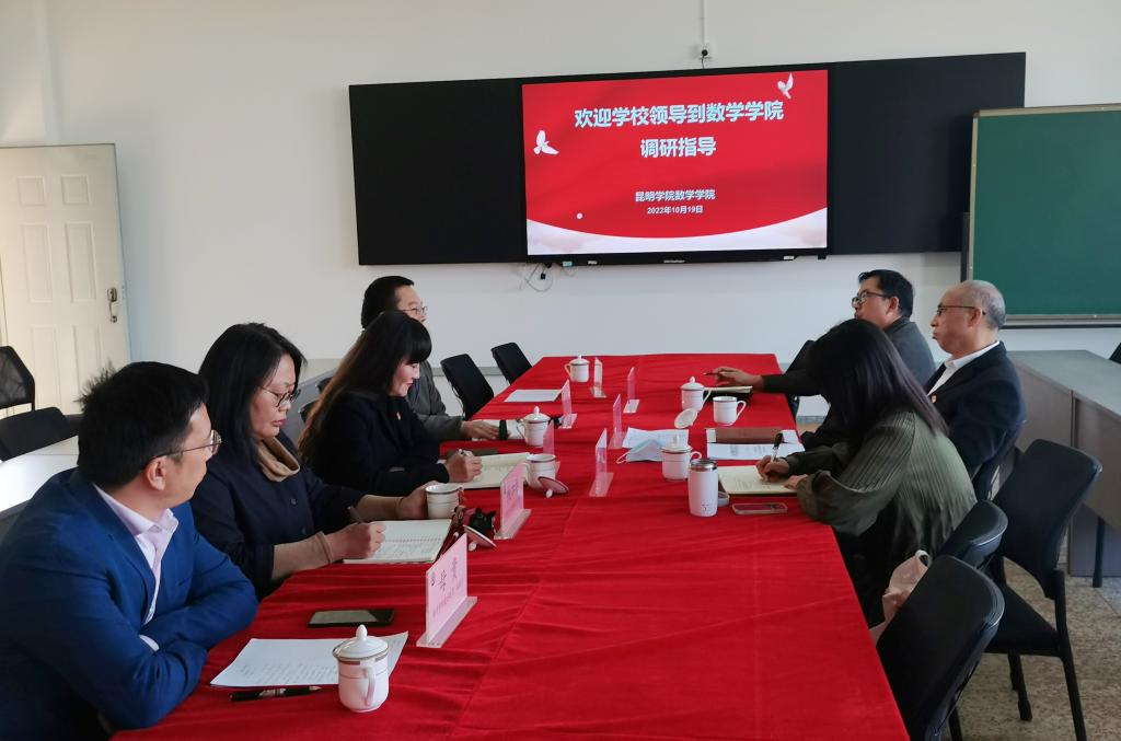 数学学院党政班子就学院的发展历史、现状、主要工作情况、学院建设和面临的困难向罗荣辉书记报告。罗荣辉书记对数学学院的工作给予肯定,并提出了工作要求和建议,希望数学学院在党政班子的领导下,继续攻坚克难,进一步推动学院发展。