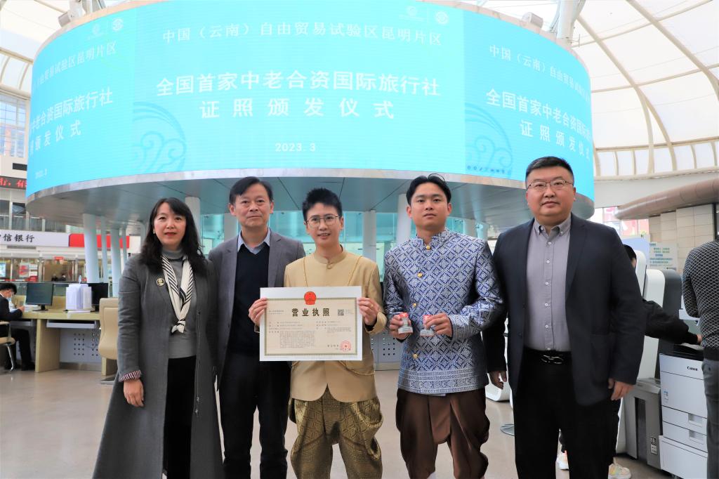 3月8日,全国首家中(国)老(挝)合资国际旅行社证照在中国(云南)自由贸易试验区昆明片区颁发,德赢官网老挝籍留学生王伟(中文名)创业项目“云南老中国际旅行社有限公司”落地自贸试验区昆明片区,这也是云南省首家外资旅行社在片区落地。
