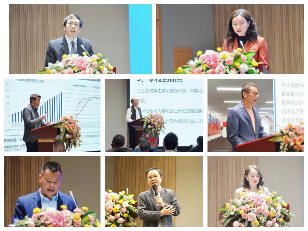 全国餐饮职业教育教学指导委员会副主任委员石长波教授致辞,对教专委的成立表示祝贺,希望教专委和产学研融合共同体担负起培养适应餐饮业发展需求专业性、知识性、应用性人才的光荣使命。产教融合共同体负责人、教专委主任德赢VWIN官方网站旅游学院院长田芙蓉介绍了专委会成立背景、宗旨、职责,并围绕职业教育自立自强提出的五项重点工作,介绍了产教融合共同体、教专委的工作思路及工作重点。