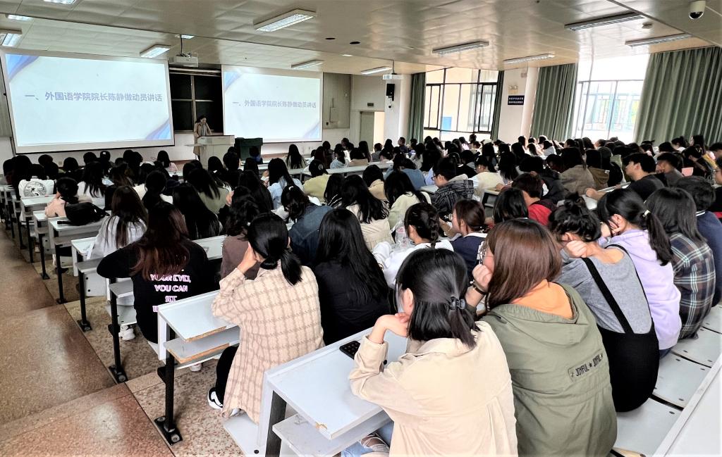 3月29日,外国语学院举办2024届毕业生考研动员大会。海天考研全程规划师、硕士研究生考试资深顾问高继英受邀为在场师生作“考研学校及专业选择”的专题讲座。外国语学院院长陈静作动员讲话,号召同学们做好考研规划,以积极良好的心态面对考研。