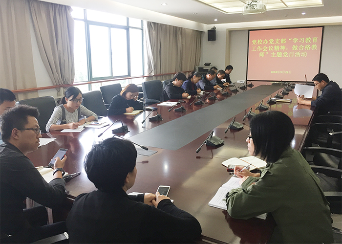 9月28日,党校办党支部组织全体党员在办公楼411会议室开展“学习教育工作会议精神,做合格教师”主题党日活动。