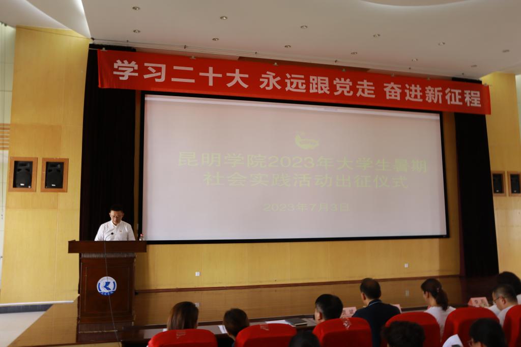 7月3日,德赢VWIN官方网站2023年大学生暑期社会实践出征仪式在惟行楼1501报告厅举行。学校党委副书记李莉,宣传部、团委、学生处、教务处、招生就业处相关领导和各二级学院党委副书记出席仪式。校团委全体教师团干部,各二级学院团委书记及暑期社会实践活动志愿者代表参加。仪式由校团委副书记郎易主持。