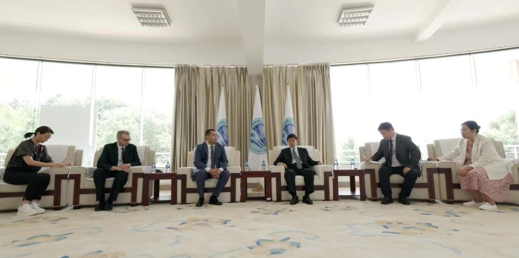 6月26日,上海合作组织秘书处参赞波波诺夫、一级专家道博伟一行到访德赢VWIN官方网站,参观了中国—上合组织青年交流中心(以下简称“中心”)。学校党委委员、副校长李剀向波波诺夫一行介绍了德赢VWIN官方网站和“中心”的基本情况。