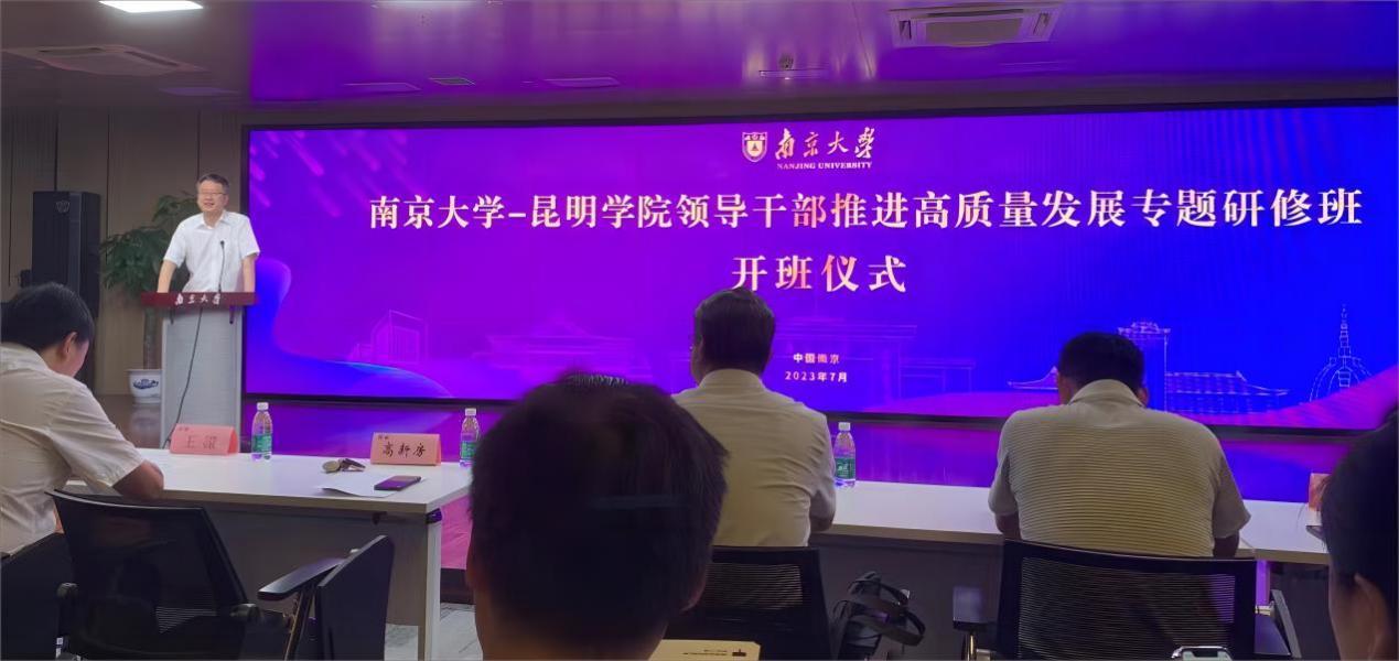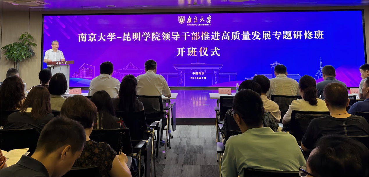 7月9日至15日,学校“领导干部推进高质量发展”专题研修班在南京大学举办,深入学习贯彻党的二十大精神,结合主题教育和全省教育发展大会要求,围绕对标一流高校推进学校高质量发展主题,组织学校中层干部进行专题研修培训。