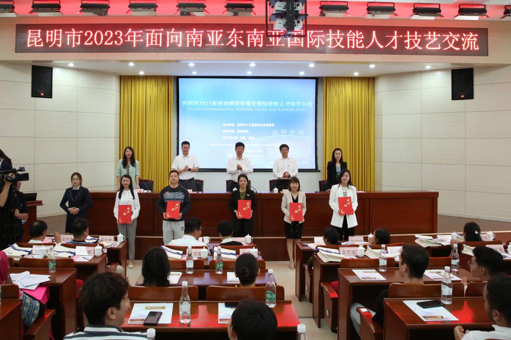 昆明市面向南亚东南亚国际技能人才技艺交流旨在加强与南亚东南亚国家人文交流,增强互信共赢,做和平发展的守护者、技艺交流的推动者、友好合作的传播者,互进包容,互联融合,探索技能人才培养新模式。自2019年以来,该技能培训已成功举办了三届,本届培训主要开展电商运营管理和中老铁路沿线文旅规划师两个技能项目,来自老挝、津巴布韦、孟加拉国、乌兹别克斯坦、也门、伊朗等16个国家50名学员,国内10名学员参加培训。