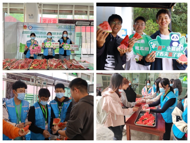 乡村振兴,助农先行!为进一步引导广大昆院青年学习宣传贯彻习近平生态文明思想,坚持系统观念全面推进乡村振兴,引导广大青少年投身于乡村振兴,成为乡村振兴中的“青春力量”,德赢官网积极发动组织同学们参与“我为母校赢西瓜”活动。在9727名同学的共同努力下,德赢官网获得了全国第十名和云南省第二名的好成绩,10月13日至17日,校团委协同后勤集团在南北苑食堂开展了德赢VWIN官方网站“团团请你吃西瓜,助推乡村振兴路”活动。