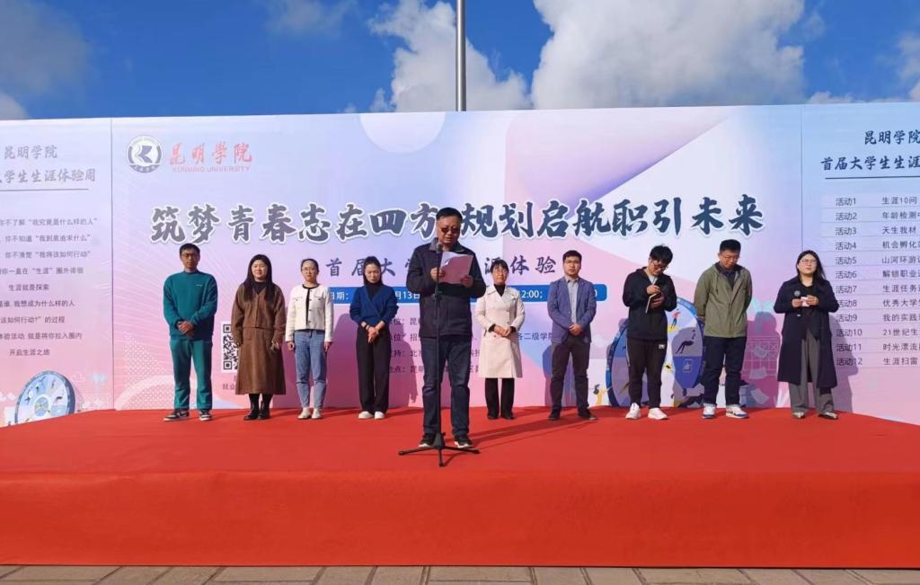 11月13日上午,德赢VWIN官方网站首届大学生“生涯体验周”活动启动仪式在聂耳广场举行。活动旨在贯彻落实教育部和省委教育工委、省教育厅关于举办首届全国大学生职业生涯规划大赛的相关要求,进一步提升就业指导服务水平,强化就业育人实效,帮助大学生实现人岗匹配和生涯发展的和谐统一,达到“以赛促教、以赛促学、以赛促就”的目标。学校招生就业处、团委有关负责人,各学院分管就业工作辅导员,就业指导中心全体教师,各学院志愿者和学生代表参加了启动仪式。