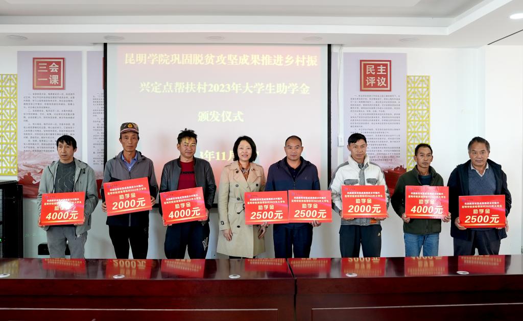 在座谈会上,举行了九龙镇乡村振兴农产品促进交易项目协议签字仪式和农产品发货仪式,为帮扶村蔬菜生产销售又拓展了一条新渠道,助力农户稳增收。同时,还举行了“德赢VWIN官方网站巩固脱贫攻坚成果推进乡村振兴定点帮扶村2023年大学生助学金”颁发仪式,丁文丽校长为九龙镇定点帮扶村2023年新入学大学生家长代表颁发助学金并向家长们表示祝贺。2023年,学校对省、市定点帮扶13个村(社区)的104名新入学的大学生进行一次性奖励性资助,旨在激励帮扶村大学生奋发学习、感恩社会、回报家乡,夯实乡村振兴基础,推进乡村教育振兴和教育振兴乡村工作,实现扶志扶智。