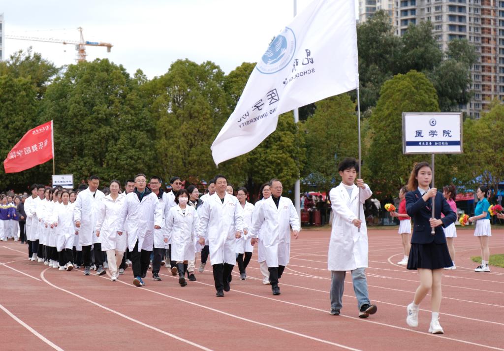 丁文丽校长致辞表示,近年来学校体育教育事业不断发展、进步,大学体育课程顺应完全学分制改革,全面实施“俱乐部制”教学模式,“阳光体育活动”课内外一体化协同推进;学校大力倡导全民健身,以全民健身促进全面健康取得新成效,学生体质健康测试达标率稳中有升,持续向好;丰富多彩的校园体育赛事,激发了广大师生对体育运动的热情,体育文化成为校园文化建设一道靓丽的风景。运动会是全校的体育盛事,更是对学校体育工作水平的一次集中检阅,希望广大师生恪守“公开、公平、公正”的竞赛规则,发扬“更高、更快、更强”的体育精神,赛出风格、赛出水平、赛出友谊、赛出团结,展现我们昆院人的精神风貌和道德风尚,并将体育运动中展现出来的自强不息、百折不挠、永不放弃、敢于担当、勇于拼搏、坚持到底的坚定信念和精神转化为推动学校高质量内涵式发展的强大动力。