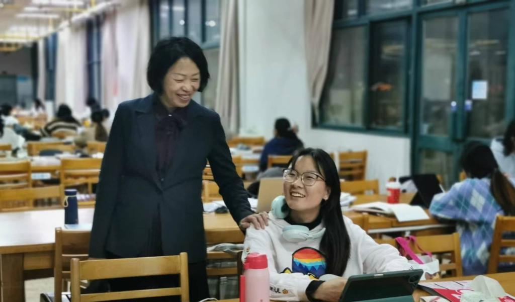 11月14日晚,丁文丽校长到图书馆、自习室、学生宿舍看望学生,了解同学们学习生活情况,听取意见建议。