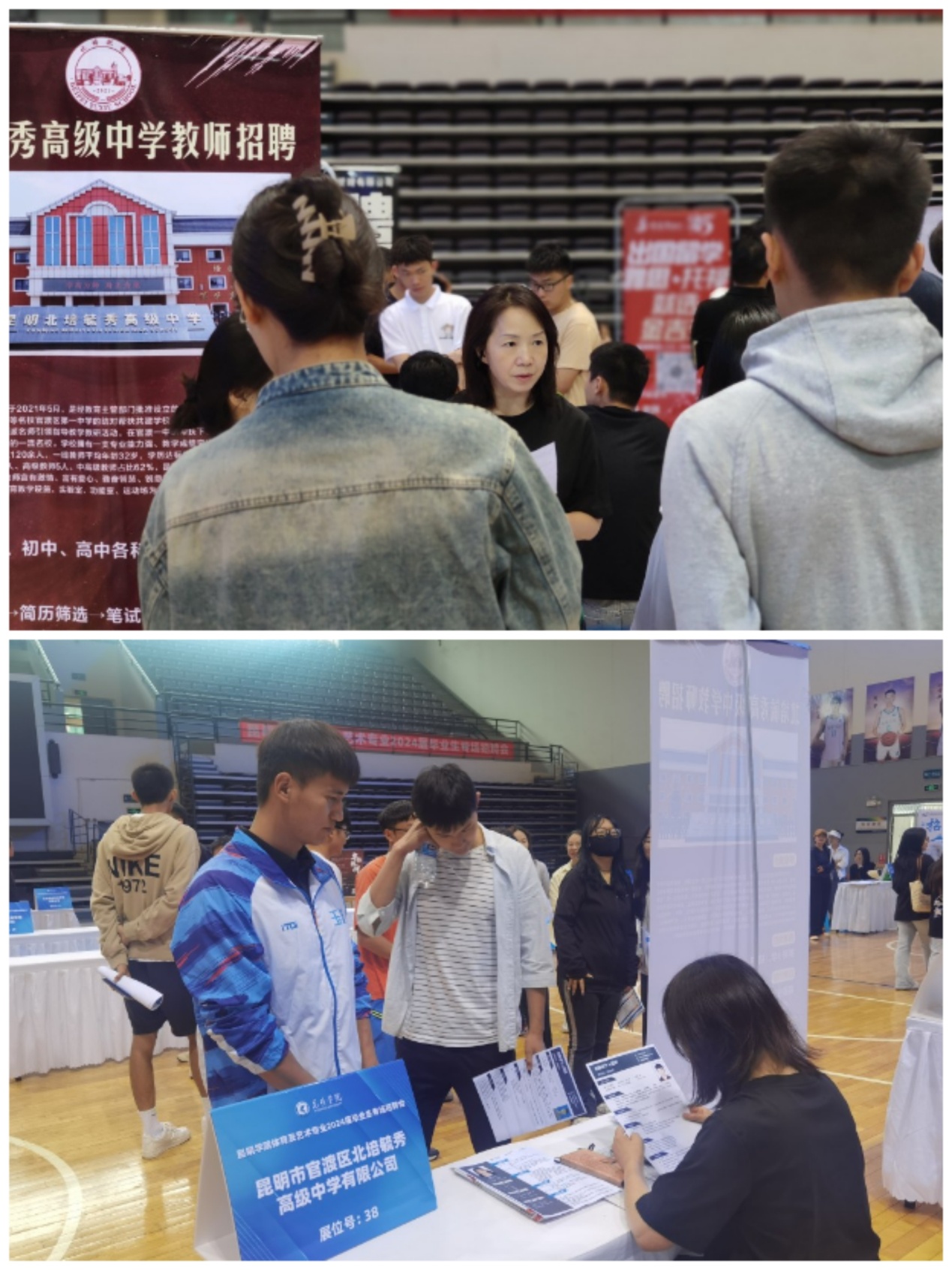 5月24日,德赢VWIN官方网站体育及艺术类专业2024届毕业生专场招聘会在学校综合体育馆举办。