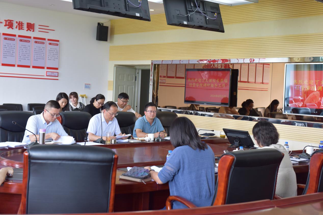 调研座谈会上,经济管理学院汇报了省级一流学科、省级哲社创新团队、省教育厅重点实验室建设情况和自贸学院建设情况;科学技术处、研究生部、教务处分别对学院学科建设、科学研究、研究生培养及自贸学院建设方案等提出工作建议。