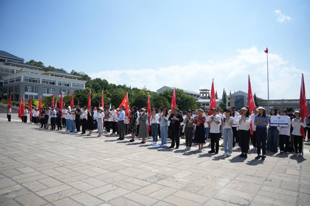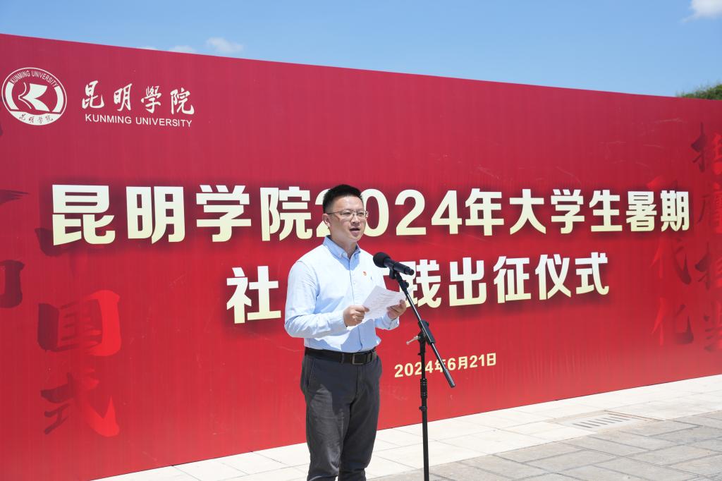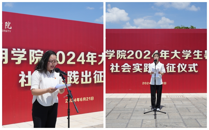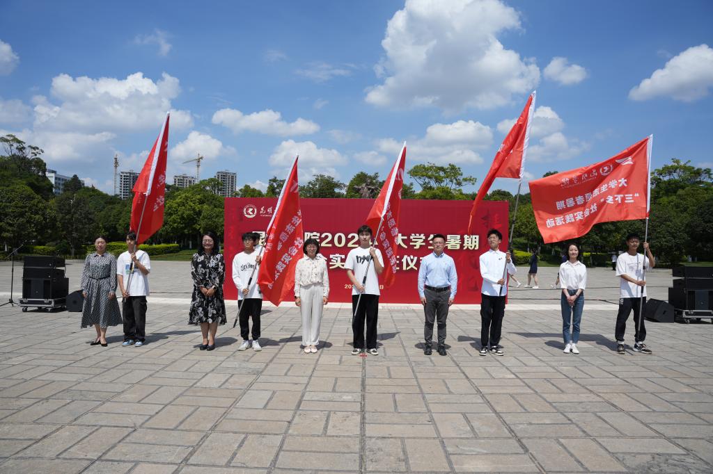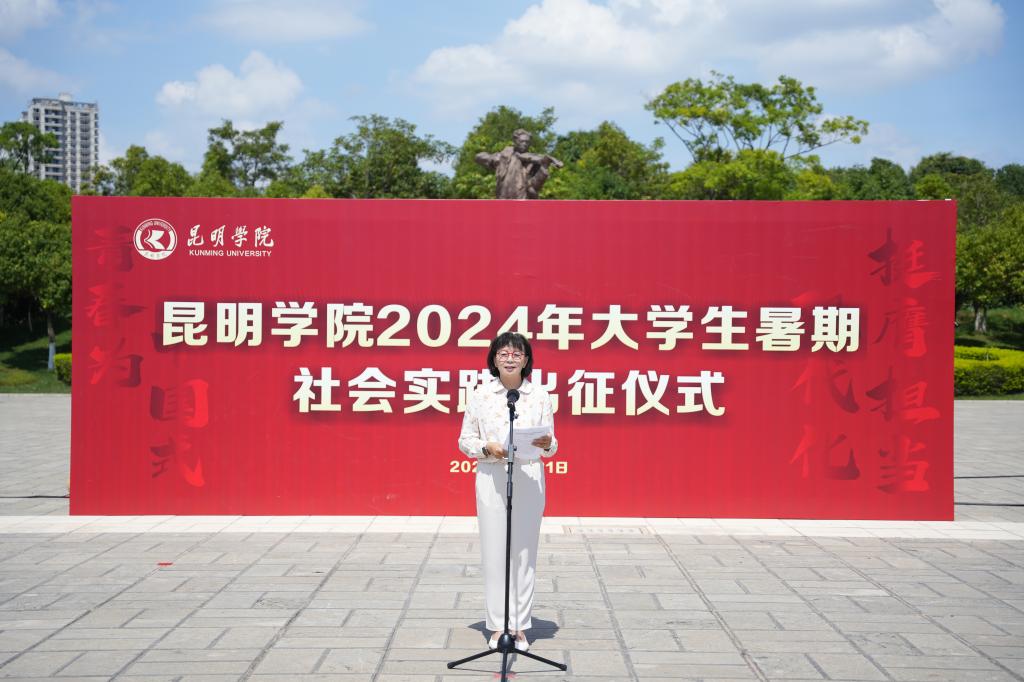 6月21日,德赢VWIN官方网站2024年大学生暑期社会实践出征仪式在聂耳广场举行。学校党委副书记李莉出席仪式并讲话。学校各二级学院暑期社会实践活动学生代表、二级学院党委副书记、团委负责人,学校相关部门负责人参加。