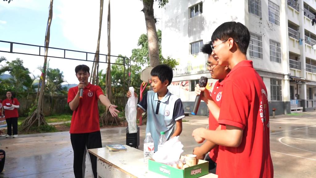 实践团来到勐腊县勐仑中心小学,向小朋友们送去了文教体育用品,面向一百多名六年级学生开展暑期志愿公益课程。教学内容分为童心向党宣讲、益智启航小课堂及“艺”起成长舞蹈课堂三个环节,通过演绎聂耳与国歌的情景剧,讲述中国青年脱贫攻坚与乡村振兴的奋进故事,生动有趣的物理实验,以及民族舞、现代舞与互动舞蹈教学,以革命故事传承红色基因,用科技艺术助力素质培养。