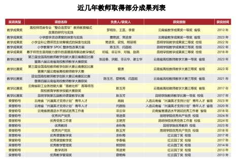 在基层党建引领下,专任教师队伍中产生了省级教学团队、校级科研团队各1个,省级、校级教学名师各1人,兴滇人才2人。学院教师曾荣获“云南省五一劳动奖章”“云南省五一巾帼标兵”“云南省高校最关爱学生班主任”“德赢VWIN官方网站优秀教师”等称号,多名教师获省级、校级青年教师课堂教学比赛各项奖励以及红云园丁优秀课堂教学奖、教学名师奖等。学院教师承担的两项教学改革项目《高校师范类专业“整合连贯型”教师教育模式改革的研究与实践》《小学数学灵动课堂的探索与实践》荣获云南省教学成果一等奖。