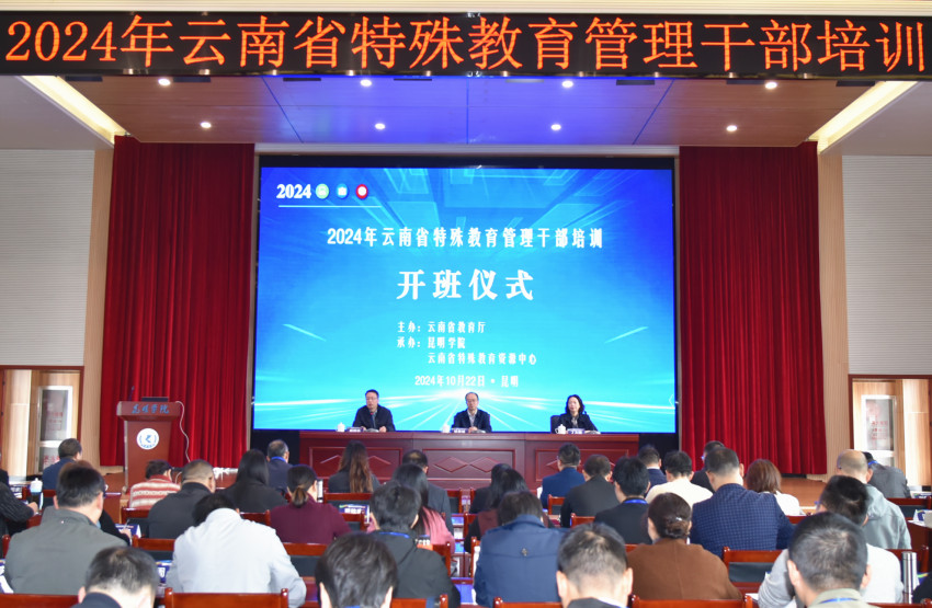 杨春城作开班讲话。他指出,省委、省政府高度重视特殊教育改革发展,改革发展机制、组织服务体系更健全,教育权益保障更有力,教师专业素养和办学质量有效提升。各地各校要切实增强进一步抓好特殊教育改革发展的责任感和紧迫感,深入贯彻全省教育大会精神和基础教育现场推进会议有关要求,全面提升特殊教育管理干部办学治校能力水平,进一步提升办学保障能力、规范送教上门工作、拓展学段服务、深化融合发展、加强师资队伍建设,切实“办好家门口的好学校”,扎实推进云南特殊教育普惠融合发展,抓紧抓实控辍保学工作,做细做实对重点人群关心关爱,努力实现“提质量、有成效”的目标。