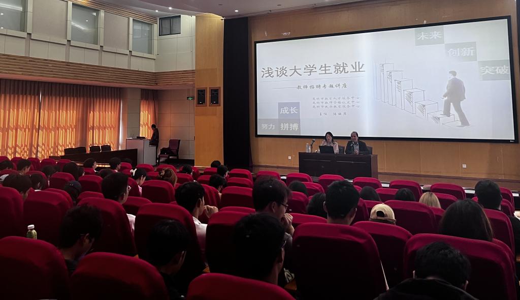 为充分发挥全过程就业育人实效,帮助学生深入了解当前就业形势,树立正确的择业观、就业观,提升就业竞争力。10月30日,招生就业处邀请昆明市教育人才服务中心、昆明市教师资格认定中心、昆明市民办教育服务中心主任陆丽萍老师到校作题为《大学生就业形势与政策》专题讲座。200余名学生代表到场聆听并互动交流。