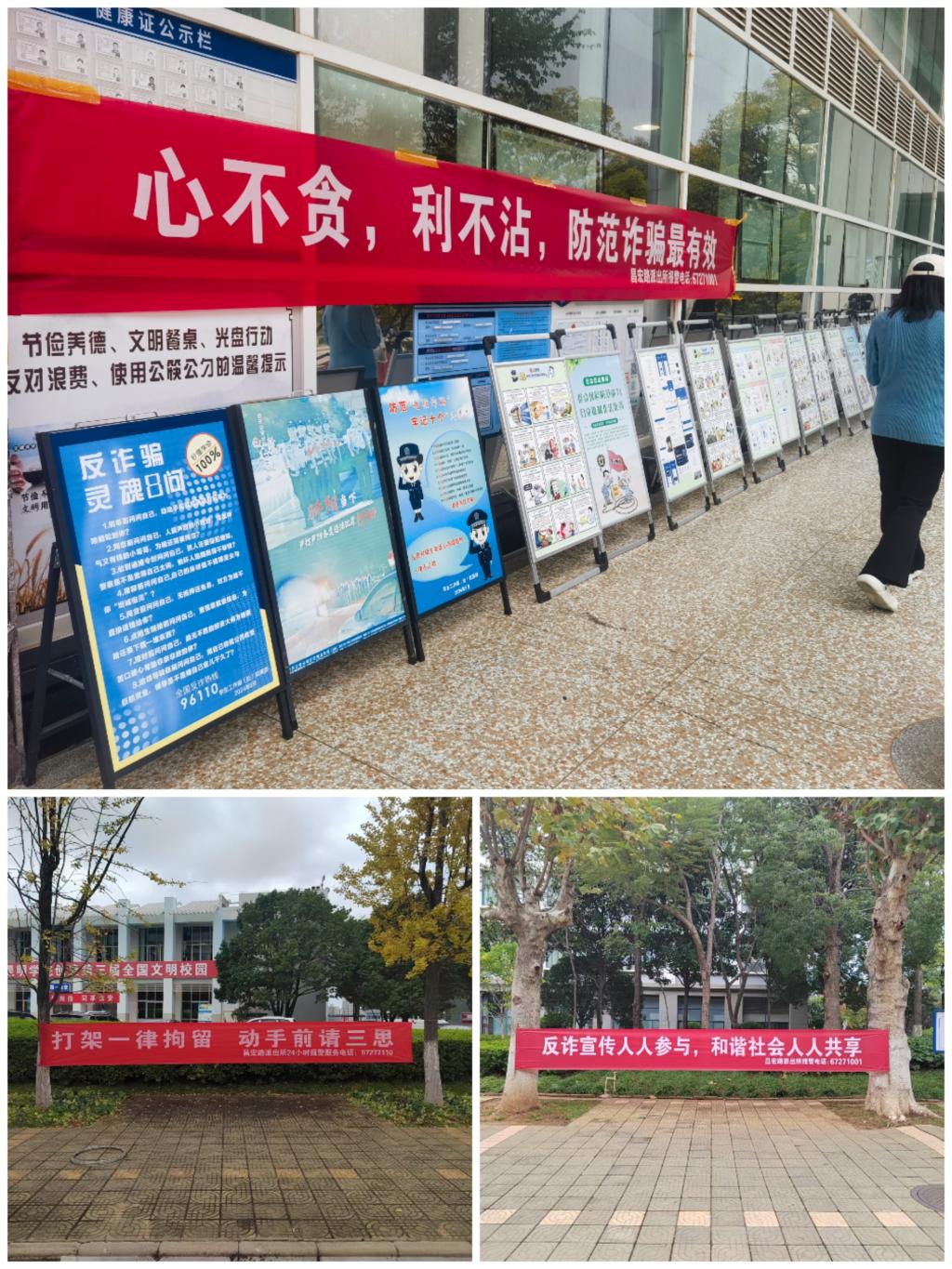 11月1日,保卫处、学生处联合昆明市公安局国家经济技术开发区分局昌宏路派出所,在润泽苑学生食堂门口举办德赢VWIN官方网站“护航青春 平安校园”2024年安全法治暨反诈宣传教育活动。昌宏路派出所符桐荧警官一行、学生处处长王涛,保卫处副处长张智益、撒召辉及相关人员参加活动。