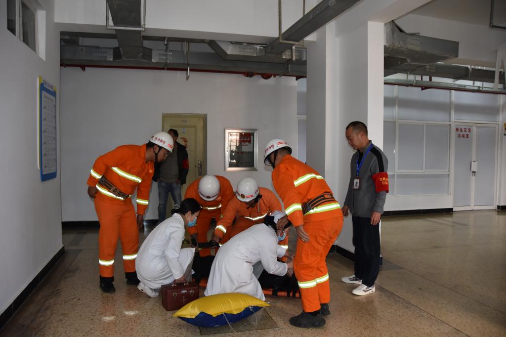 14:30演练正式开始,后勤宿管中心人员、辅导员、疏散引导组人员、义务消防队、医务人员等都按照相关要求,认真迅速完成了演练任务。