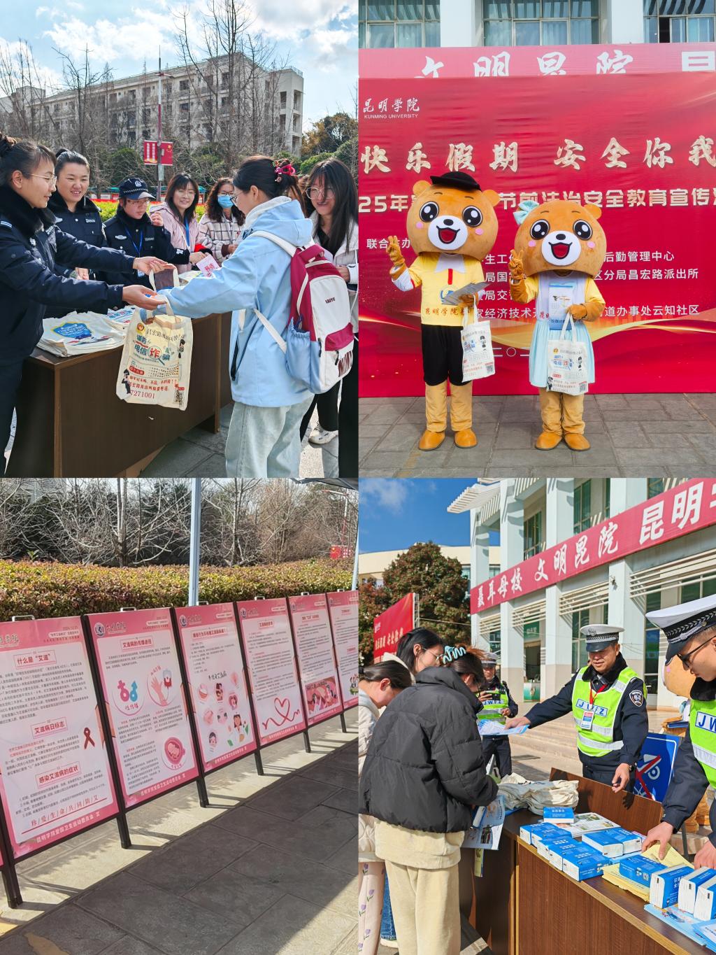 1月8日上午,保卫处、学生处、后勤管理中心联合交警七大队、昌宏路派出所、阿拉街道办事处及云知社区,在澄明苑食堂前举行德赢VWIN官方网站“快乐假期 安全你我”2025年寒假、春节法治安全教育宣传活动。