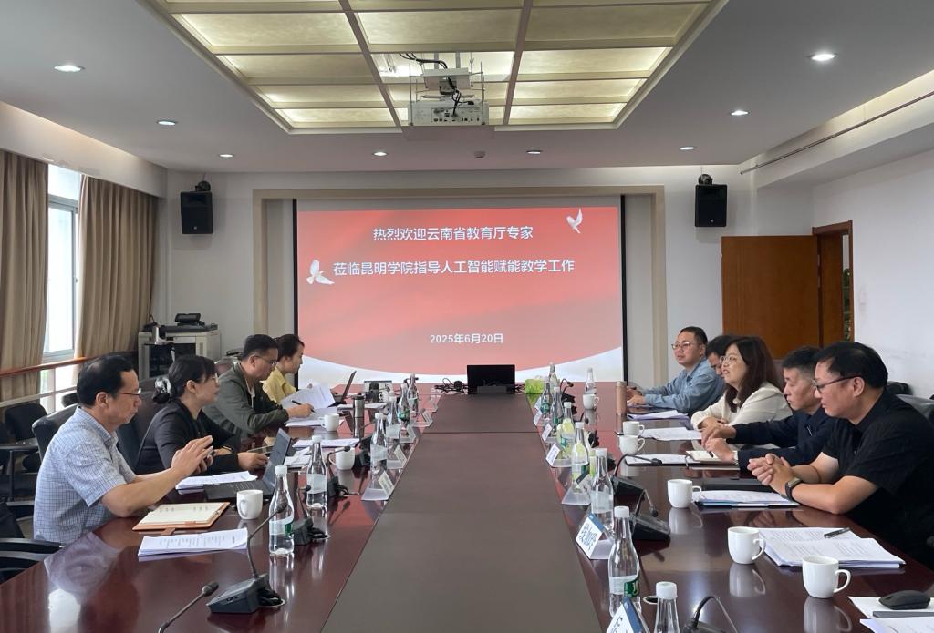 6月20日,云南省高校计算机教学研究会专家组一行莅临德赢VWIN官方网站,开展人工智能赋能教学专题调研。调研组由研究会会长、西南林业大学副校长狄光智教授,云南农业大学杨毅教授、云南师范大学罗滨教授等省内知名专家组成。德赢VWIN官方网站副校长王凡,教务处、信息中心、相关学院负责人参加调研座谈。会议由教务处处长邓瑶主持。
