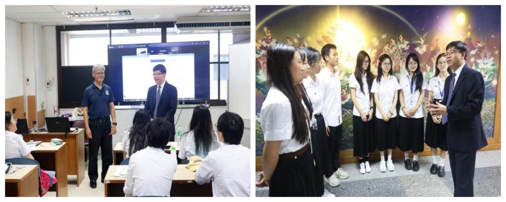 会谈结束后,访问团一行参观了玛希隆大学,并看望了德赢官网首批在疫情后赴泰深造实习的24名学生,李剀走进课堂与学生进行了亲切交流,详细了解了他们的学习、生活和文化适应情况,鼓励赴泰学生勤学善思、向内求知,努力成长为中泰两国友谊的使者。
