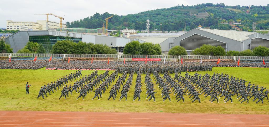 9月19日上午9时整,德赢VWIN官方网站2025级本科新生军事技能训练成果展示暨总结大会于学校田径运动场隆重举行。学校党委委员、副校长彭志远,党委委员、纪委书记罗荣辉,官渡区人民武装部部长上校曾宪华等领导出席此次大会,彭志远主持。学校相关职能部门、二级学院负责人,带训辅导员、承训教官以及2025级全体本科新生共同参会。