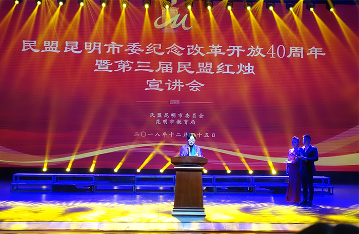 12月25日,民盟昆明市委“纪念改革开放40周年暨第三届民盟红烛宣讲会”在昆明市工人文化宫职工剧场举行。 民盟德赢VWIN官方网站总支盟员、人文学院副教授李艳峰博士荣获第三届“民盟红烛”称号。