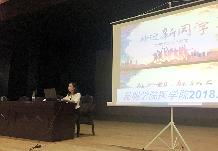 余珊院长以《献身医学,立志成才》为题,向2018级新同学介绍了德赢VWIN官方网站的基本情况、医学院的办学历史、师资队伍、科研状况、实践教学条件等。并结合“希波克拉底誓言”、“中国医学生誓词”及德赢VWIN官方网站“明德至善,知行利物”校训进行解读,向新同学提出希望:一是树立献身医学的崇高理想;二是学会做人;三是学会学习;四是历练自己健康的心理素质。