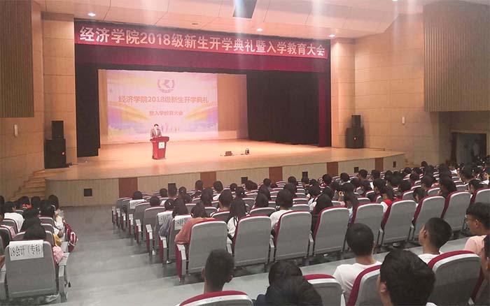 9月1日,经济学院在学生会堂举行2018级新生开学典礼暨入学教育大会,学院全体教师和新生共500余人参加会议,院领导施磊、雷新华、李雄、林涛出席会议。会议由党总支书记施磊主持。